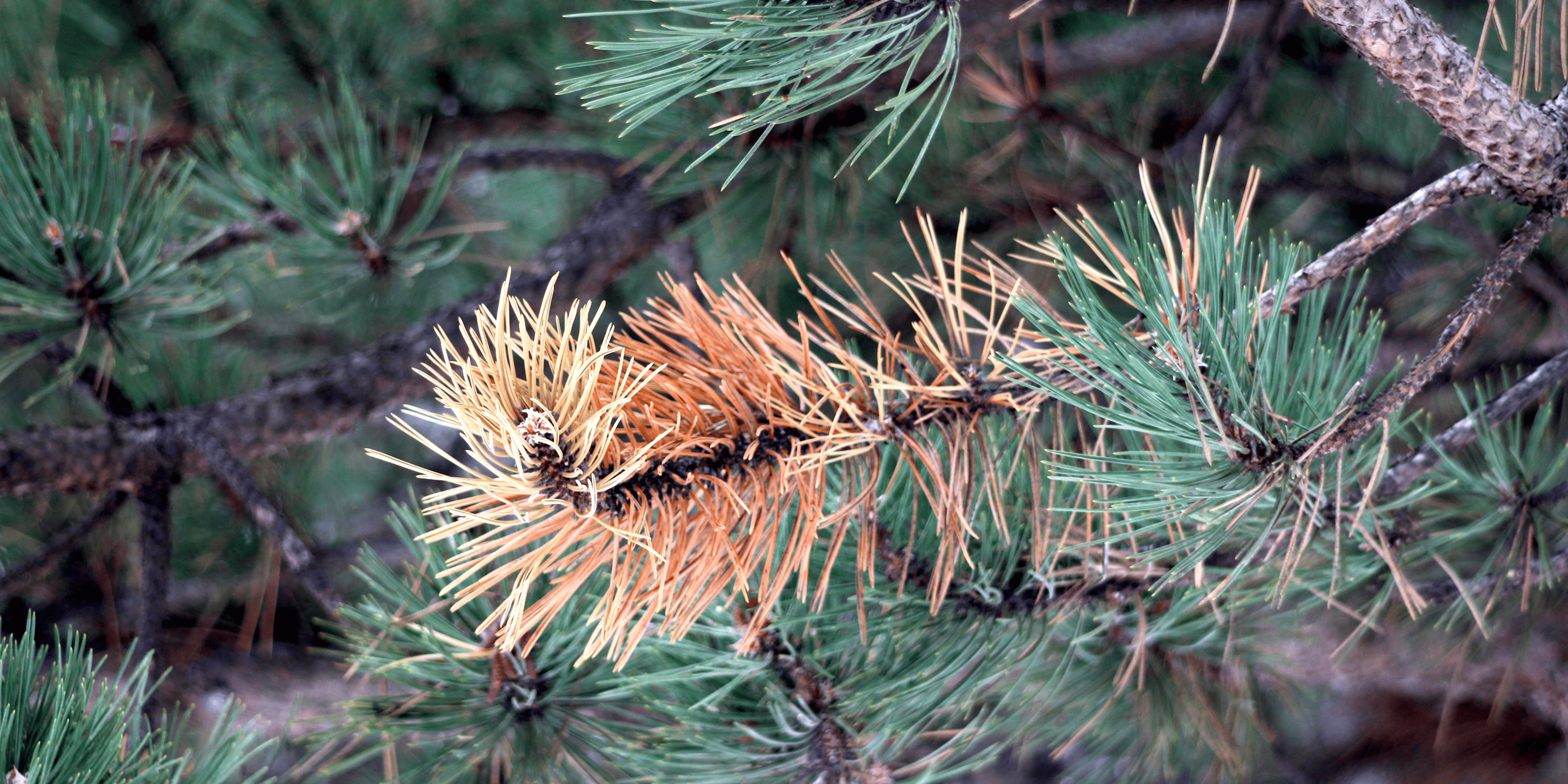• Stunted and discolored needles (yellow or reddish-brown)